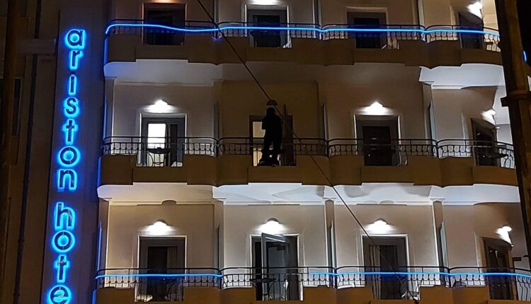 Άνδρας αγνώστων στοιχείων βγήκε στο μπαλκόνι του 3ου ορόφου του ξενοδοχείου Ariston Hotel στον σταθμό Λαρίσης και απειλεί να πέσει στο κενό.