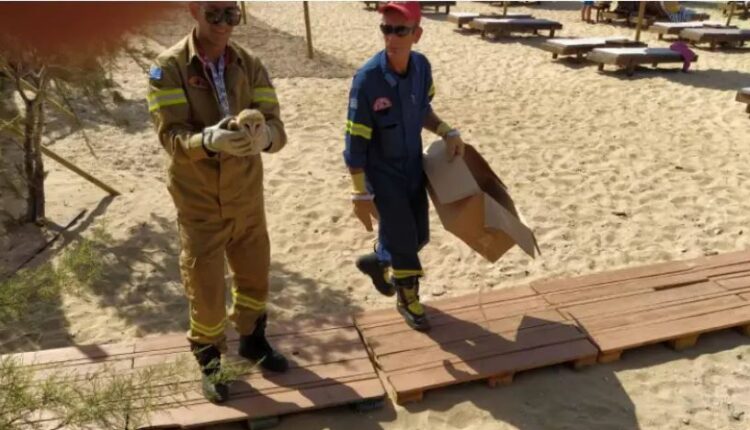 Το ζώο έδειχνε να είναι τραυματισμένο, είχε πανικοβληθεί και δεν έδειχνε διάθεση να απεγκλωβιστεί μόνο του. Σε συννενόηση της επιχείρησης με το πυροσβεστικό τμήμα Άνδρου έφθασε άμεσα κλιμάκιο της υπηρεσίας και με ειδικό εξοπλισμό απεγκλώβισε το άγριο πτηνό και το απομάκρυναν με ασφάλεια από την παραλία.
