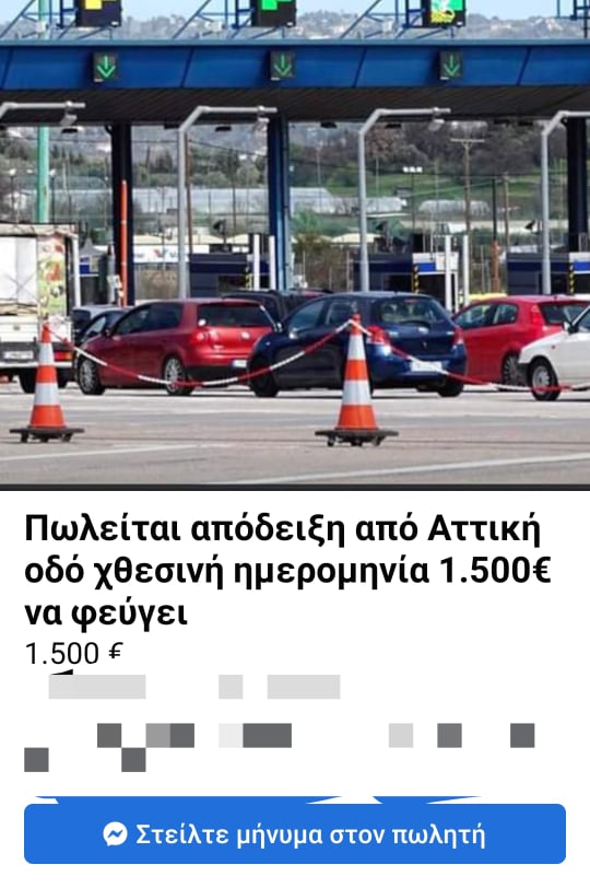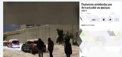 Επιτήδειοι θέλησαν να εκμεταλλευτούν την κατάσταση και ανάρτησαν στα social media αγγελίες, πουλώντας τις αποδείξεις της Αττικής Οδού, από την ημέρα του εγκλωβισμού των χιλιάδων οδηγών, σε τιμές 500 και 1.500 ευρώ!