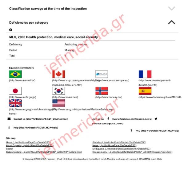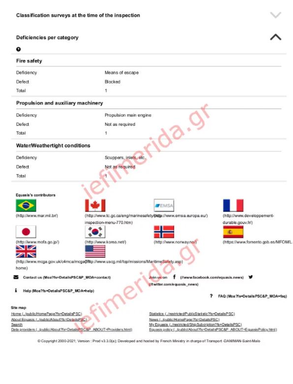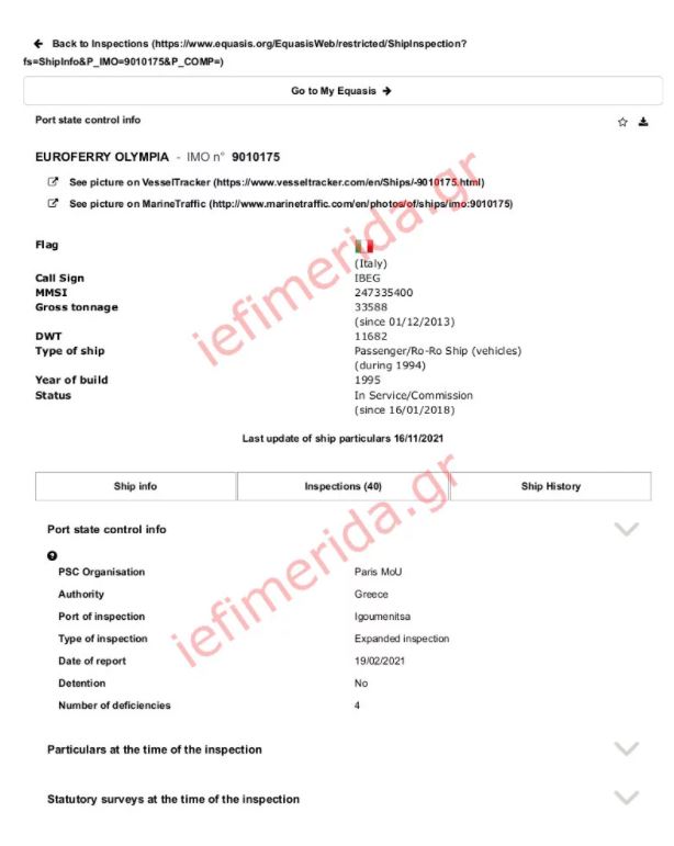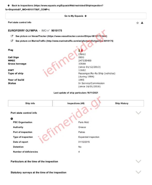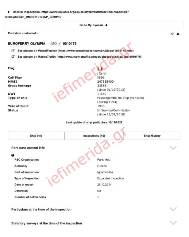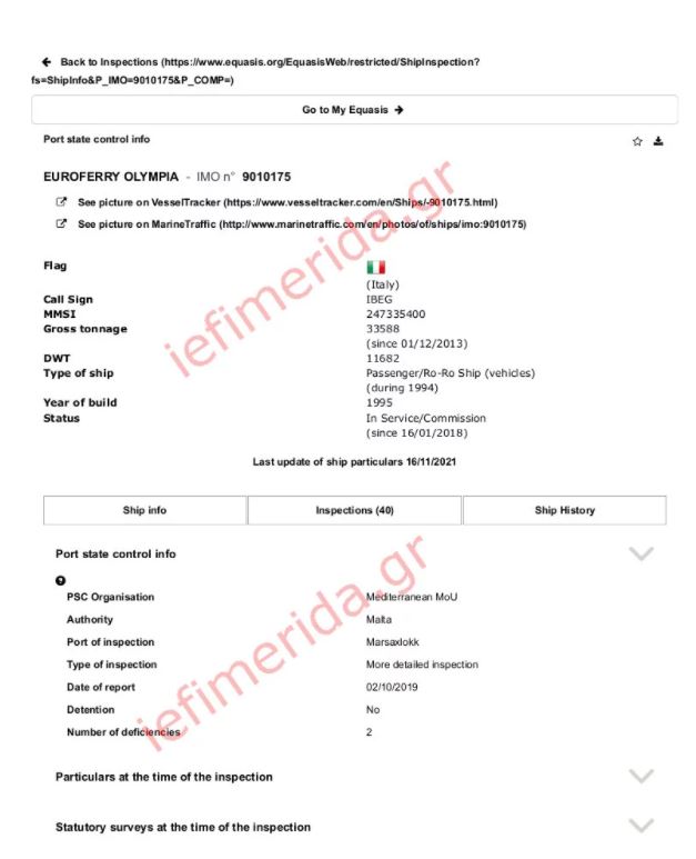 Τα έγγραφα με τις εκθέσεις ελέγχου του Euroferry Olympia
