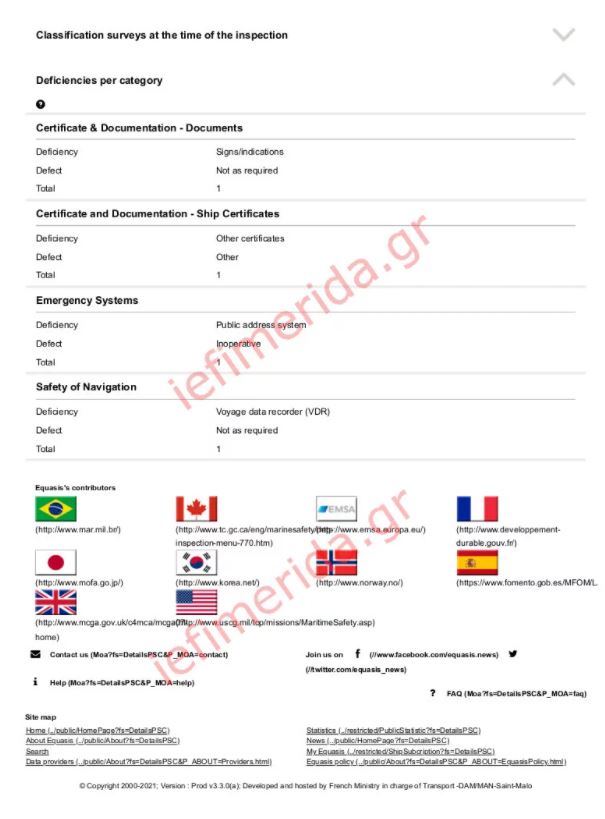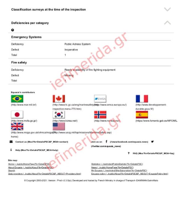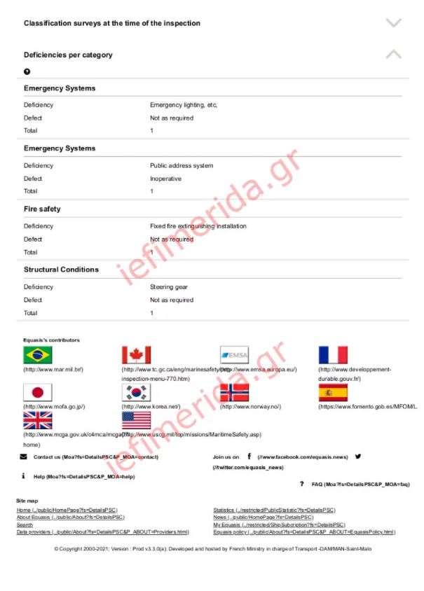 Το 2019 ο έλεγχος ήταν και πάλι εξονυχιστικός. Πραγματοποιήθηκε στη Μάλτα και διαπιστώθηκε πως έλειπε (!) ο εξοπλισμός πυρόσβεσης του πλοίου, ενώ δεν λειτουργούσαν τα μεγάφωνα. Το 2021 παρατηρήθηκαν και πάλι προβλήματα στο σύστημα επικοινωνίας, τα συστήματα ασφαλείας και έκτακτης ανάγκης αλλά και σε επίπεδο πυρασφάλειας.