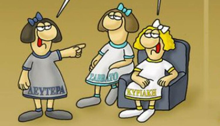 Σάββατο, Κυριακή και Δευτέρα… πρωταγωνιστούν στο σημερινό σκίτσο του Αρκά, το οποίο είναι κάτι παραπάνω από απολαυστικό.