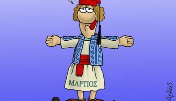 Ο καλλιτέχνης μας καλημερίζει, έχοντας «ντύσει» τον Μάρτιο, τσολιά.
