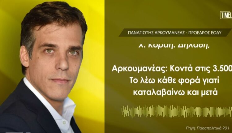 Στον ραδιοφωνικλο σταθμό Παραπολιτικά 90,1 και την εκπομπή Μπρα ντε Φερ με τους δημοσιογράφους Δημήτρη Τάκη και Χριστίνα Κοραή μίλησε ο Πρόεδρος του ΕΟΔΥ, Παναγιώτης Αρκουμανέας και αποκάλυψε ότι τα κρούσματα που θα ανακοινωθούν σήμερα θα είναι περίπου 3.500.