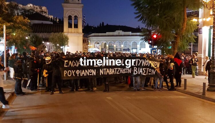Αντεξουσιαστές μόλις έφτασαν στην οδό Βεραντζέρου όπου στεγάζεται και το ΑΤ Ομόνοιας πέταξαν μολότοφ κατά των αστυνομικών δυνάμεων που βρίσκονταν στο σημείο. Οι αστυνομικοί απάντησαν κάνοντας χρήση χημικών και κρότου-λάμψης.