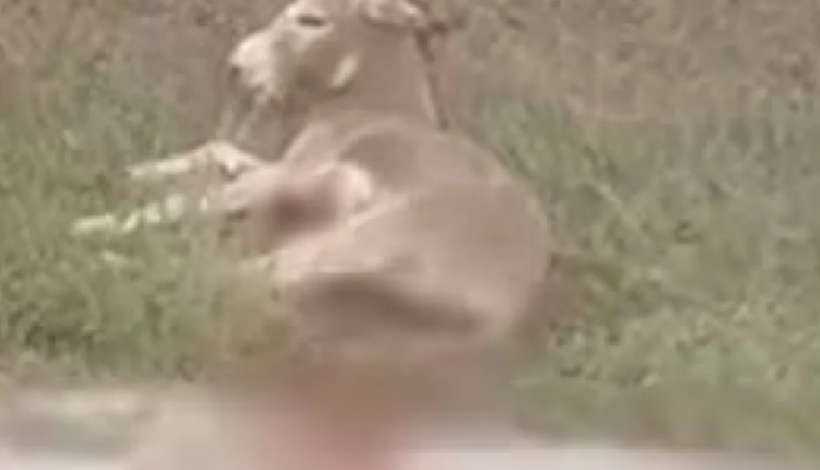 Το ζώο ταλαιπωρημένο και με πληγές έμεινε για λίγη ώρα στην άκρη του δρόμου και στη συνέχεια φαίνεται ότι ο ίδιος το απομάκρυνε.