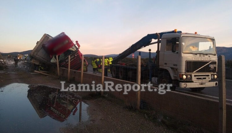 Από την εκτροπή της νταλίκας στην Αθηνών-Λαμίας δεν αναφέρθηκε κάποιος τραυματισμός παρά μόνο υλικές ζημιές στο όχημα και τις προστατευτικές μπάρες του δρόμου.