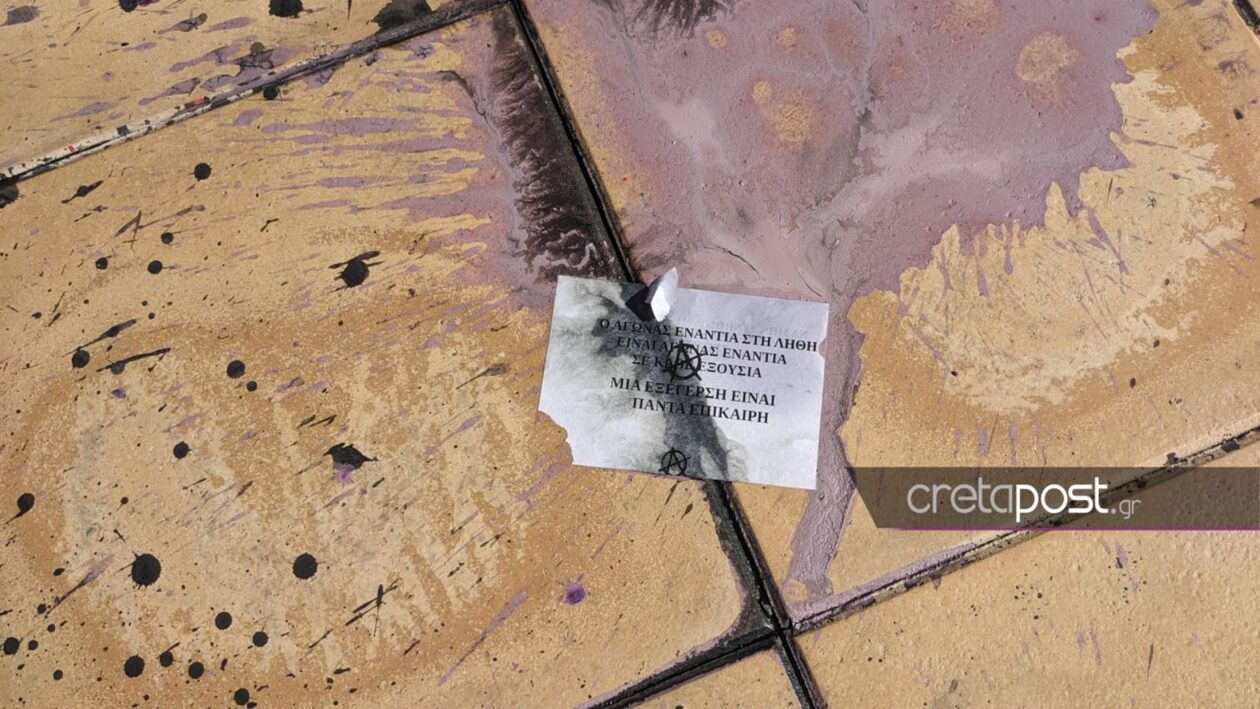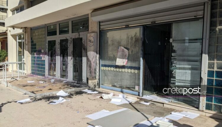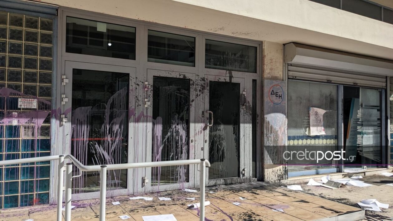 Ειδικότερα, πέταξαν μπογιές στα γραφεία, που βρίσκονται στην οδό Χρυσοστόμου, μόλις πέντε λεπτά από το κέντρο του Ηρακλείου.