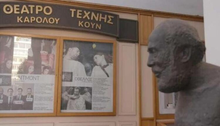 Την προτομή του Καρόλου Κουν από το Υπόγειο του Θεάτρου Τέχνης στην οδό Πεσμαζόγλου 5, μέσα στη Στοά του βιβλίου έκλαψαν άγνωστοι χθες νωρίς το πρωί.