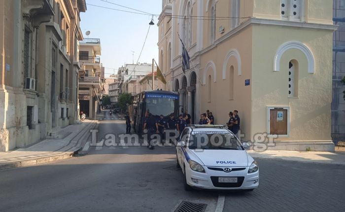 Πάνοπλοι αστυνομικοί βρίσκονται πέριξ των Δικαστηρίων θυμίζοντας τις προηγούμενες εποχές με τη δίκη – Κορκονέα, ενώ ισχυρές αστυνομικές δυνάμεις έχουν αναπτυχθεί και σε όλη την πόλη της Λαμίας.