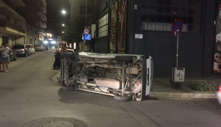 Ένα βανάκι συγκρούστηκε με ένα αυτοκίνητο, στο οποίο επέβαινε ένα ζευγάρι με τα παιδιά του, και είχε ως αποτέλεσμα να τουμπάρει.