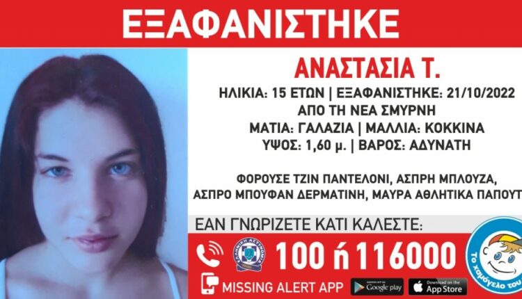 Το Χαμόγελο του Παιδιού έκανε γνωστό πως η περιπέτεια της Αναστασίας Τ., 15 ετών, έληξε το Σάββατο 22/10/2022, δίνοντας τέλος στην αγωνία των δικών της ανθρώπων που την αναζητούσαν.