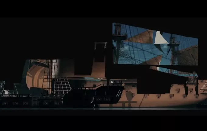 Για την υλοποίηση του έργου σε συνεργασία με το πλήρωμα του σκάφους έγινε ψηφιακή σάρωση της μιας επιφάνειας του πλοίου που λειτουργεί ως καμβάς, επελέγησαν τα σημεία αναφοράς για την τρισδιάστατη προβολή και προστέθηκε προβολικό πανί στην μια πλευρά-για ανάπτυξη της επιφάνειας προβολής.