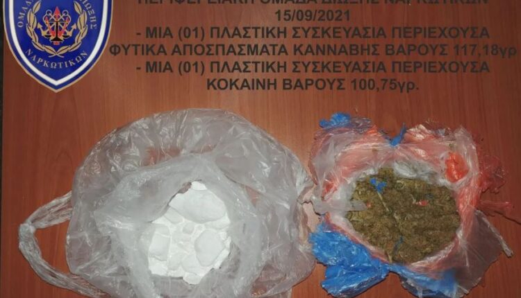 Ειδικότερα, σε έλεγχο που διενεργήθηκε σε Φ/Γ όχημα κατά τη διάρκεια εκφόρτωσης Ε/Γ-Ο/Γ πλοίου στο λιμένα Μυτιλήνης, κατόπιν ένδειξης του σκύλου ανίχνευσης ναρκωτικών ουσιών «ΚΥΜ», εντοπίστηκε χαρτοκιβώτιο το οποίο περιείχε μια πλαστική συσκευασία περιέχουσα κοκαΐνη βάρους 100,75 γρ. και μια πλαστική συσκευασία περιέχουσα φυτικά αποσπάσματα κάνναβης βάρους 117,18 γρ.