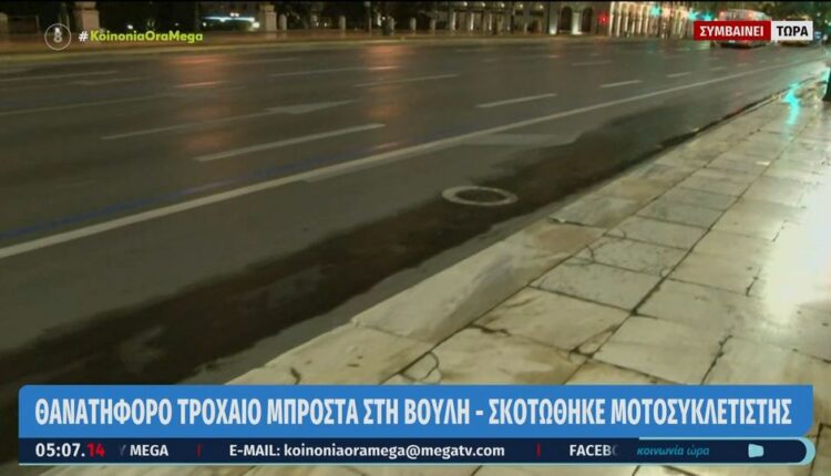 Τροχαίο δυστύχημα σημειώθηκε, τα ξημερώματα στο κέντρο της Αθήνας, κοντά στη Βουλή, με αποτέλεσμα να χάσει τη ζωή του ένας 25χρονος μοτοσικλετιστής.