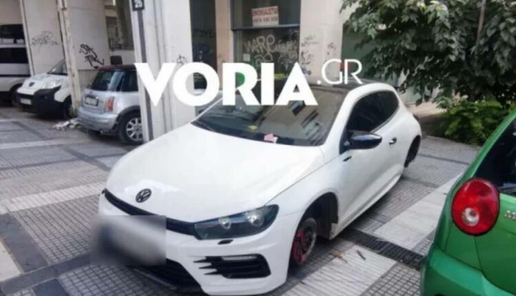 Ειδικότερα, ο οδηγός είχε σταθμεύσει το όχημα του σε πεζοδρόμιο επί της Βασ. Όλγας το βράδυ της Κυριακής και το πρωί της Δευτέρας έκπληκτος, το βρήκε χωρίς ρόδες, ενώ δέχτηκε και μια κλήση για παράνομο παρκάρισμα.