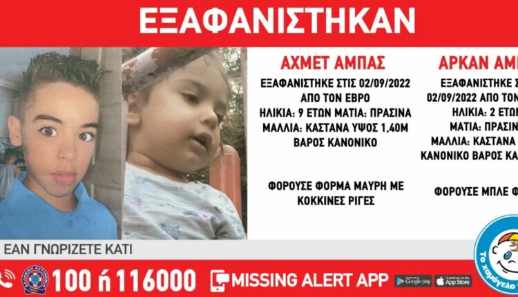 Στις 02/09/2022, βραδινές ώρες, εξαφανίστηκε από την περιοχή του Έβρου, ο Αχμέτ- Ahmed (ον.) Αμπάς-Abbas (επ.) 9 ετών, Ιρακινής καταγωγής και ο Αρκάν- Arkan (ον.) Αμπάς-Abbas (επ.) 2 ετών, Ιρακινής καταγωγής.
