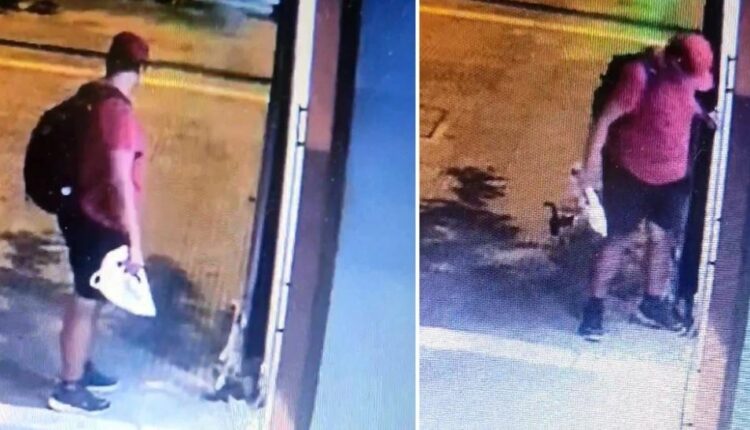 Η πράξη του που έγινε στα τέλη Αυγούστου, καταγράφηκε σε κλειστό κύκλωμα διπλανού καταστήματος και το βίντεο ήρθε στην κατοχή της φιλοζωικής οργάνωσης που προχώρησε στη συνέχεια στην καταγγελία του γεγονότος στην αστυνομία .