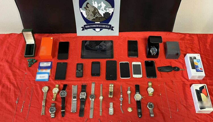Στην οικία του πρώτου, χρυσαφικά – κοσμήματα (μαργαριταρένια περιδέραια, σκουλαρίκια, ρολόγια κ.α.) και πέντε κινητά τηλέφωνα των οποίων οι νόμιμοι κάτοχοι αναζητούνται. Μέρος των ανευρεθέντων αντικειμένων αφαιρέθηκαν κατά την προαναφερόμενη περίπτωση ληστείας και αποδόθηκαν.