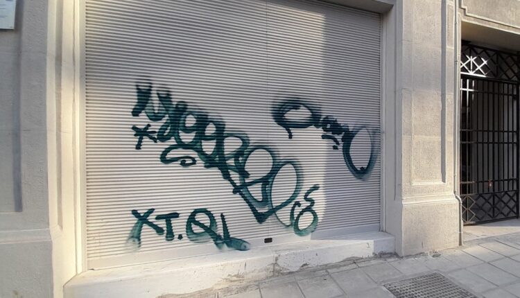 Γκράφιτι στην πύλη της Αγοράς Μοδιάνο στη Θεσσαλονίκη επέλεξαν να κάνουν βάνδαλοι, λίγο καιρό πριν κάνει εγκαίνια.
