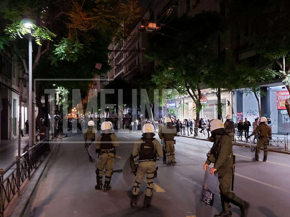 Οι αστυνομικές δυνάμεις απώθησαν του διαδηλωτές στο τελείωμα της Πανεπιστημίου. Ο κύριος όγκος της πορείας ήταν στάσιμος επί της οδού Πανεπιστημίου. Κυκλοφοριακό Κομφούζιο επικράτησε στους δρόμους γύρω από την Ομόνοιας.