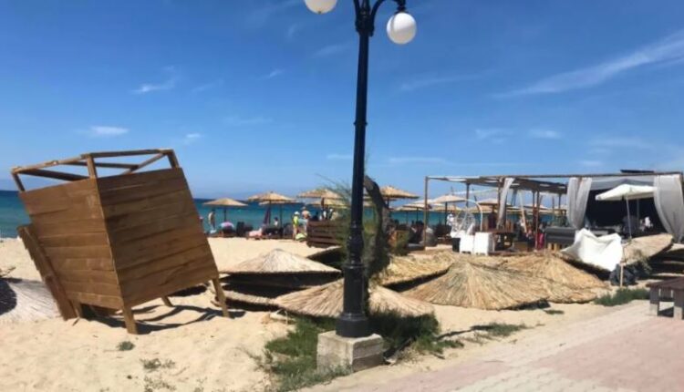 Το καιρικό φαινόμενο σημειώθηκε σε παραλία στα Μουδανιά. Την ώρα εκείνη στην ακτή ήταν αρκετοί λουόμενοι. Ο ισχυρός άνεμος ξερίζωσε ομπρέλες, αναποδογύρισε ξαπλώστρες και προκάλεσε φθορές σε παρακείμενο beach bar.