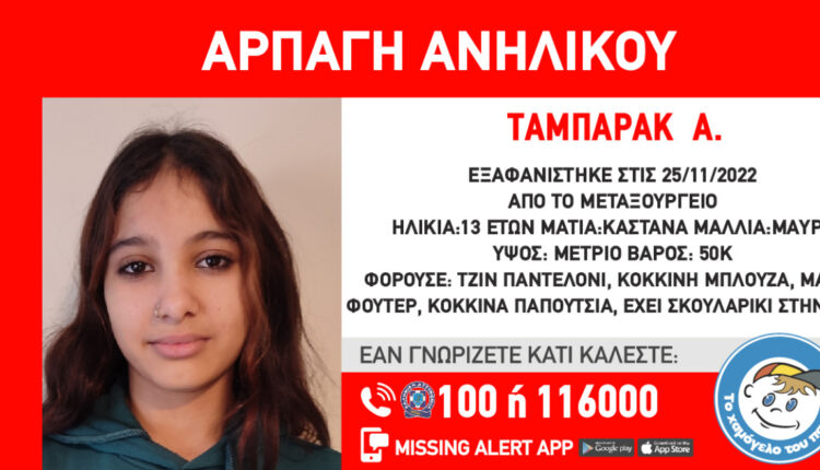 Τα στοιχεία 13χρονου κοριτσιού που απήχθη, χθες Παρασκευή, από το Μεταξουργείο έδωσε στη δημοσιότητα το «Το Χαμόγελο του Παιδιού».