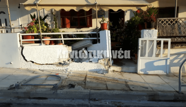 Από τη σύγκρουση ένα μεγάλο μέρος του τοίχου καταστράφηκε χωρίς ευτυχώς να υπάρξει τραυματισμός.