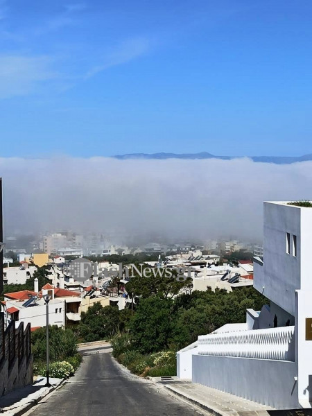 Ασυνήθιστα θερμός και υγρός αέρας που ήρθε σε επαφή με την ψυχρή θάλασσα και πλησίασε στην ακτή προκάλεσε τη σπάνια ομίχλη μεταφοράς που τύλιξε τα βόρεια παράλια των Χανίων.