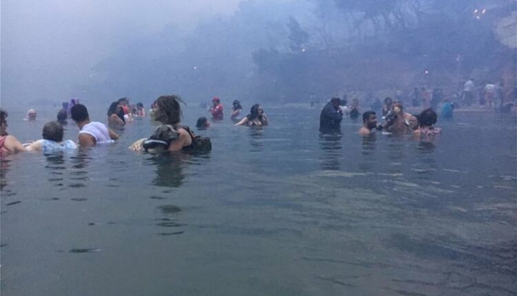 Περίπου στις 18.10 άκουσε κορναρίσματα στην πόρτα της. Ήταν η φίλη της που είχε έρθει να της πει να φύγουν. «Στα 200 μέτρα έχουν μποτιλιαριστεί όλα τα αυτοκίνητα. Εκεί έγινε χαμός. Ερχόντουσαν αμάξια από όλες τις κατευθύνσεις. Τρέξαμε στη θάλασσα. Το θερμικό κύμα εκείνη την ώρα με έκανε νιώθω πως θα πεθάνω 40 μέτρα από τη θάλασσα. Μπήκαμε στη θάλασσα. Γινόταν πόλεμος. Ακούγαμε αμάξια να σκάνε. Εκρήξεις. Το μαγαζί στην Αργυρά Ακτή να έχει εκρήξεις, να πέφτουν στην θάλασσα ξύλα, τέντες μέσα στη θάλασσα κι εμείς να πηγαινοερχόμαστε να μη καούμε. Βγήκαμε νεκροί – ζωντανοί. Βγάλαμε τις μπλούζες και τις κάναμε μάσκα. Τα ουρλιαχτά από τους καμένους ανθρώπους δε θα τα ξεχάσω ποτέ. Παιδάκια ούρλιαζαν, σκυλιά έκλαιγαν».