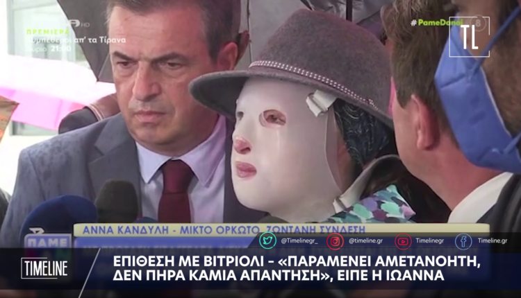 «Εμεινε απαθής και ατάραχη» όταν είδε τις φωτογραφίες της Ιωάννας μετά την επίθεση με βιτριόλι, όπως δήλωσε η ίδια κατά την έξοδό της από το δικαστήριο.