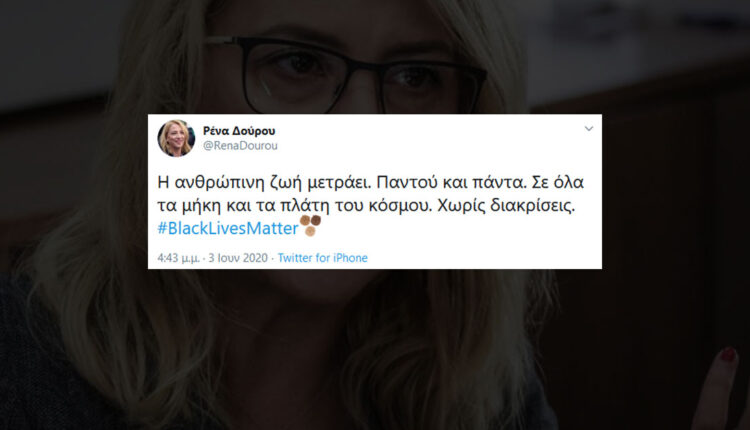 Ένα tweet έγραψε η Ρένα Δούρου, υποστηρίζοντας το hashtag #BlackLivesMatter για όσα συμβαίνουν στην Αμερική.