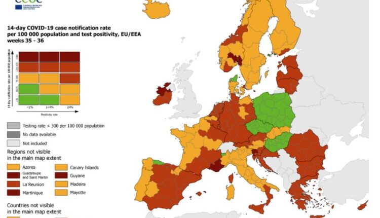 Στο «πορτοκαλί» εξακολουθεί να βρίσκεται όλη η χώρα, σε ότι αφορά την πανδημία του κοροναϊού, όπως επιβεβαιώνουν οι νέοι χάρτες του ECDC.