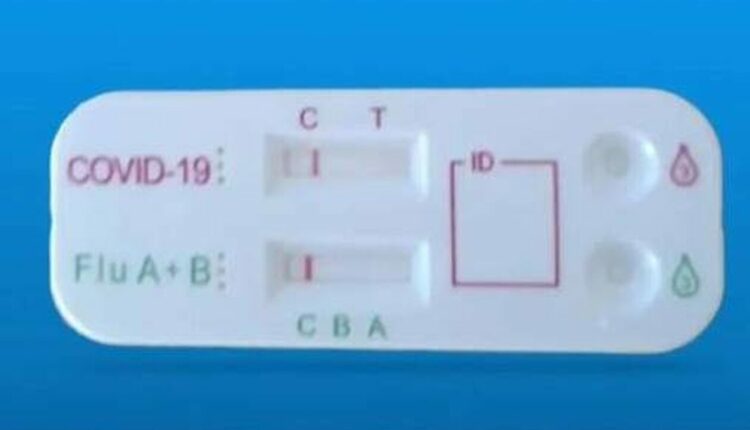 Τα τεστ γίνονται με τον ίδιο τρόπο αλλά είναι διπλά, δηλαδή βάζουμε μία σταγόνα υγρού για τον κορωνοϊό και μία για τη γρίπη.