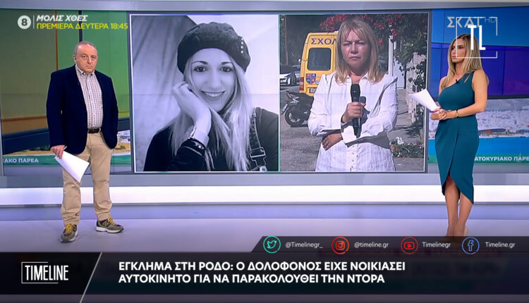 Μιλώντας στην εκπομπή του ΣΚΑΙ, η Μαρία, όπως είναι το όνομα της ξαδέρφης της Ντόρας, αποκάλυψε ότι ο δράστης της γυναικοκτονίας στη Ρόδο είχε νοικιάσει αυτοκίνητο και παρακολουθούσε την κοπέλα, πριν την δολοφονήσει. «Δεν μπορώ να καταλάβω πώς ένας άνθρωπος πήρε τη ζωή ενός άλλου ανθρώπου για το τίποτα. Δεν την παρακάλεσε να τα ξαναβρούν. Ένας άνθρωπος που αγαπάει, παρακαλάει» συμπλήρωσε, εμφανώς συγκλονισμένη.
