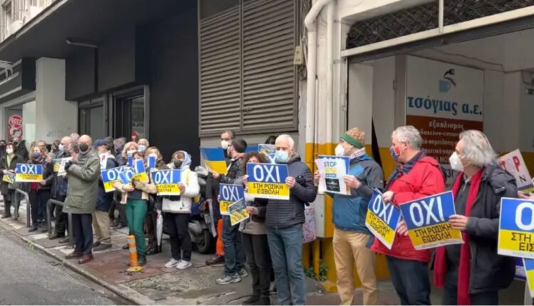 Στη διαμαρτυρία συμμετέχουν και Ουκρανοί υπήκοοι που ζουν στη Θεσσαλονίκη.