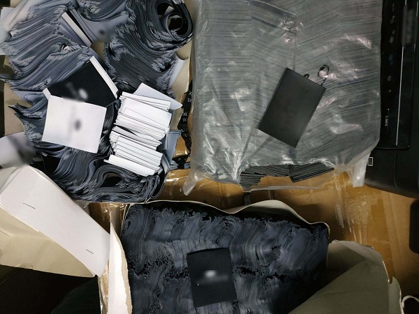 – πάνω από 50.000 ετικέτες γνησιότητας διαφόρων επώνυμων εταιρειών (ένδυσης-υπόδησης) καταφανώς πλαστές,