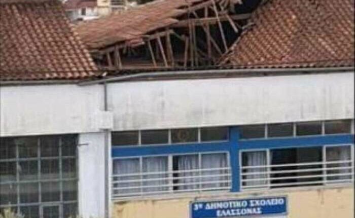 Κατέρρευσε η οροφή του 3ου δημοτικού σχολείου Ελασσόνας, το οποίο συστεγάζεται με το 3ο νηπιαγωγείο της πόλης.