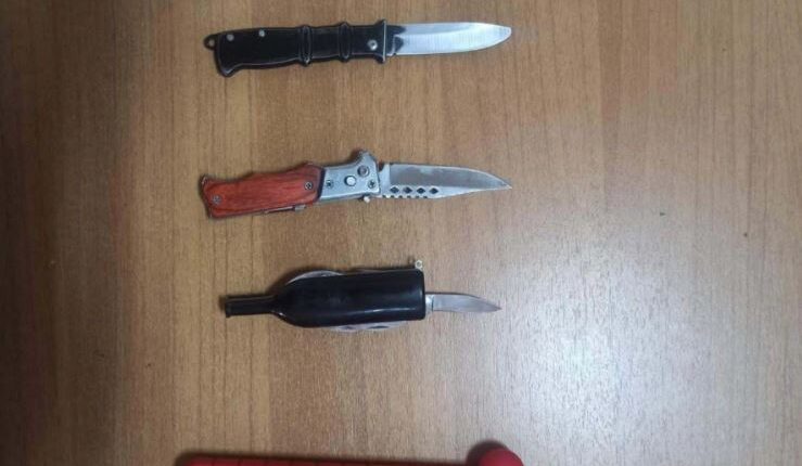 Μαχαίρια, σιδερογροθιές κι ένας κόφτης βρέθηκαν πάνω στους ανήλικους συλληφθέντες -ηλικίας 15 έως 17,5 ετών- για τα σοβαρά επεισόδια που έγιναν το πρωί στο ΕΠΑΛ Σταυρούπολης στη Θεσσαλονίκη. Εις βάρος τους σχηματίστηκε δικογραφία για οπλοκατοχή και, κατά περίπτωση, για απείθεια.