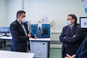 Η Περιφέρεια Κεντρικής Μακεδονίας εξόπλισε το Εργαστήριο με σύγχρονο φασματογράφο και ο κ. Τζιτζικώστας ενημερώθηκε για τη λειτουργία του από τον επικεφαλής της ομάδας επιστημόνων, καθηγητή, Νικόλαο Ράικο.