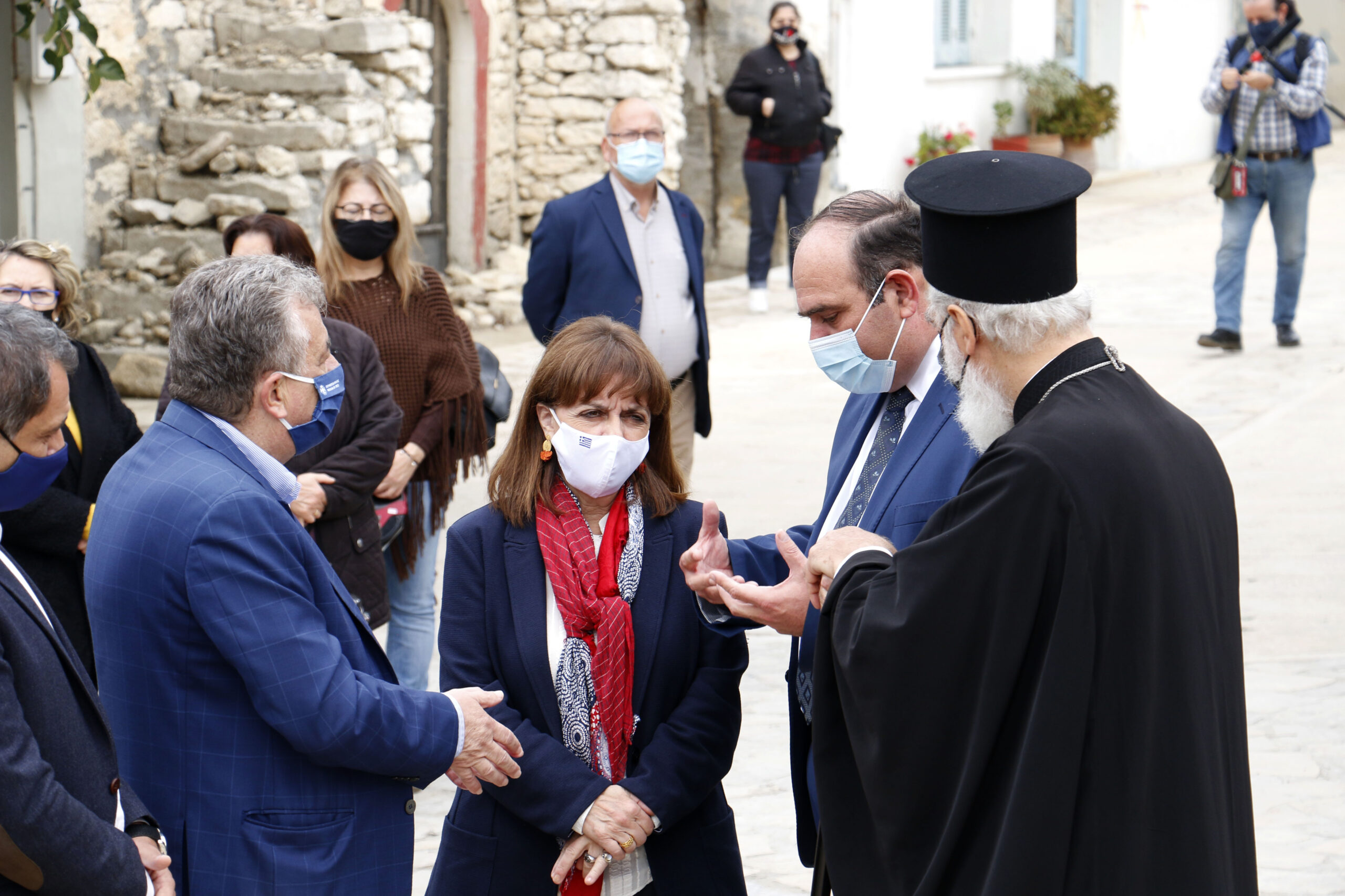 Στην πλατεία του χωριού οι κάτοικοι υποδέχθηκαν την πρόεδρο με θερμό χειροκρότημα ενώ είχε στηθεί μπουφές με κρητικό κέρασμα προς τιμήν της προέδρου.