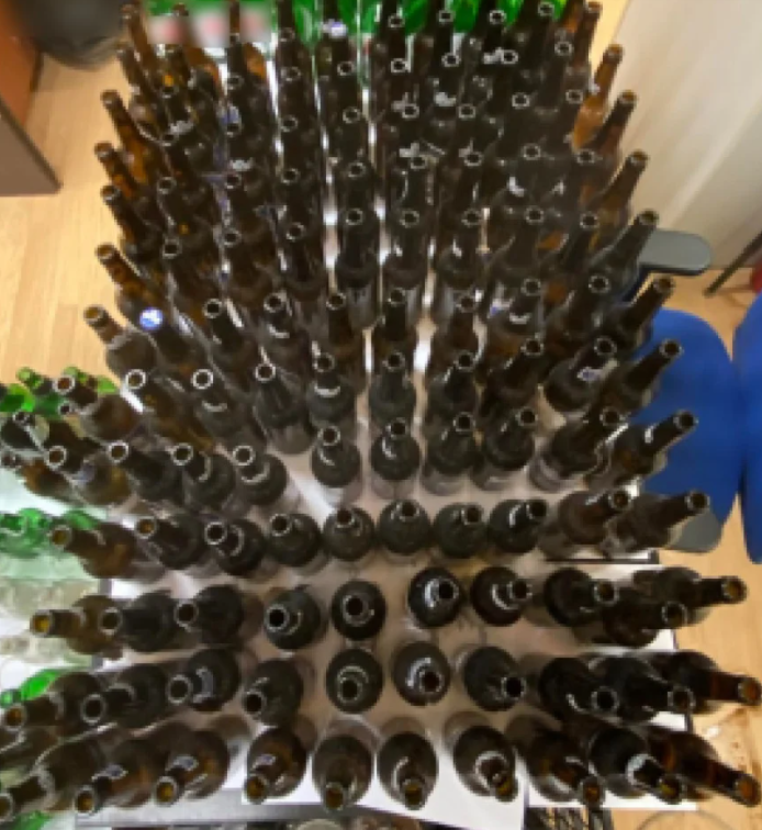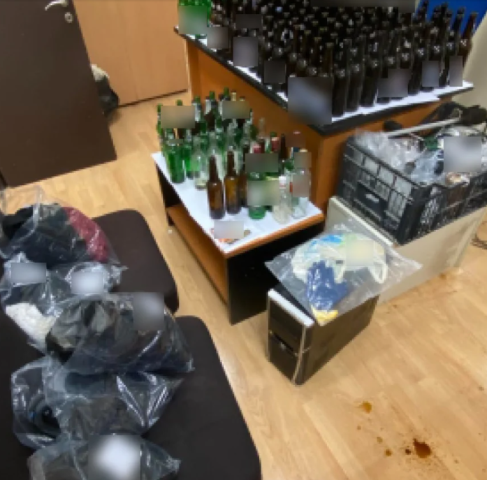 Από τις έρευνες που έγιναν τα βρέθηκαν και κατασχέθηκαν: 4 δοχεία με εύφλεκτο υγρό, πλήθος γυάλινων μπουκαλιών, 2 κοντάρια με πυρσούς προσαρτημένους σε αυτά, προσανάμματα φωτιάς και αναπτήρες, αντιασφυξιογόνα μάσκα, μάσκα προσώπου, γάντια και κράνος, μικροποσότητα κάνναβης, 3 κινητά τηλέφωνα και 2 κεντρικές μονάδες ηλεκτρονικού υπολογιστή.