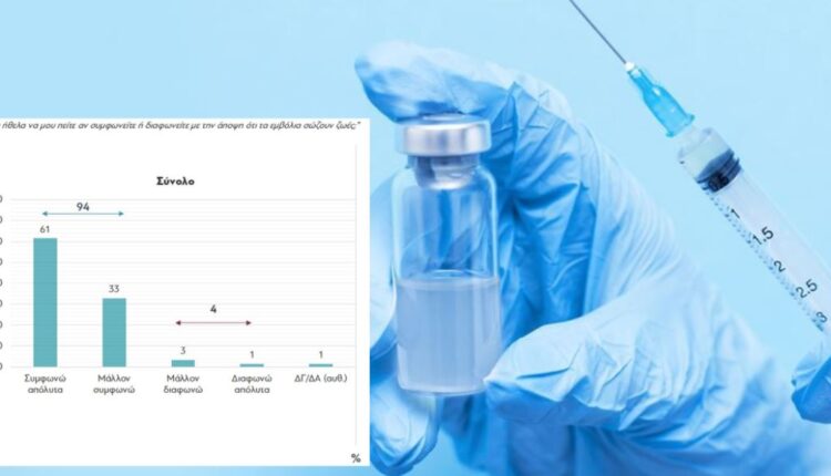 Εξάλλου, όπως φαίνεται από τα αποτελέσματα και του Σεπτεμβρίου, και επιβεβαιώνεται και τώρα, στην Ελλάδα δεν φαίνεται να υπάρχει ισχυρό κίνημα αντιεμβολιαστών ή αρνητών του ιού, τονίζει ο κ. Γεωργακόπουλος. Σύμφωνα με την έρευνα, η συντριπτική πλειοψηφία των Ελλήνων έχει πολύ θετικές απόψεις για τα εμβόλια γενικότερα. Στην ερώτηση «συμφωνείτε ή διαφωνείτε με την άποψη ότι τα εμβόλια σώζουν ζωές» το 94% των ερωτηθέντων συμφωνεί. Μάλιστα, το 61% συμφωνούν «απολύτως».