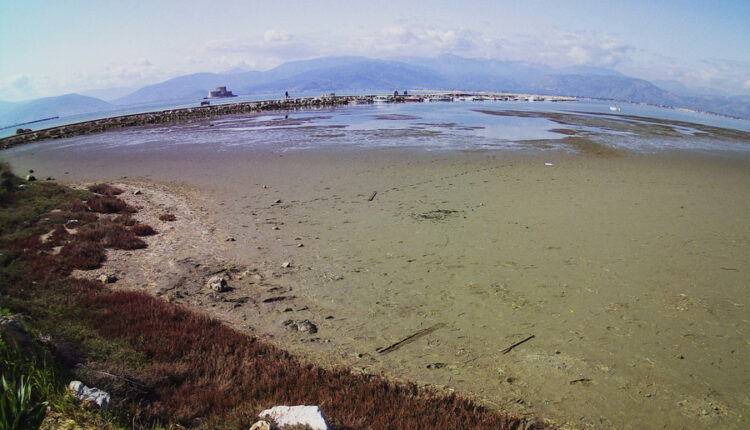 Σε εξέλιξη βρίσκεται το φαινόμενο της άμπωτης στο Ναύπλιο, αποτέλεσμα της παλίρροιας.