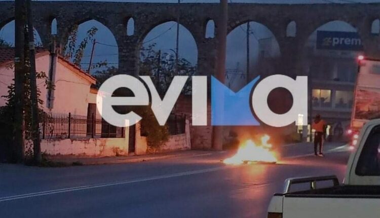 Πληροφορίες αναφέρουν πως περίπου τριάντα άτομα Ρομά καίνε λάστιχα και κάδους απορριμμάτων.