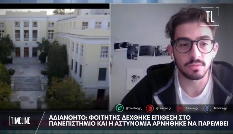 Για όσα εκτυλίχθηκαν στο χώρο του Οικονομικού Πανεπιστημίου μίλησε ο φοιτητής σε τηλεοπτικό σταθμό. Όπως περιέγραψε, τον πλησίασαν τρεις άγνωστοι και τον χτύπησαν με αφορμή δηλώσεις που είχε κάνει υπέρ της πανεπιστημιακής αστυνομίας.