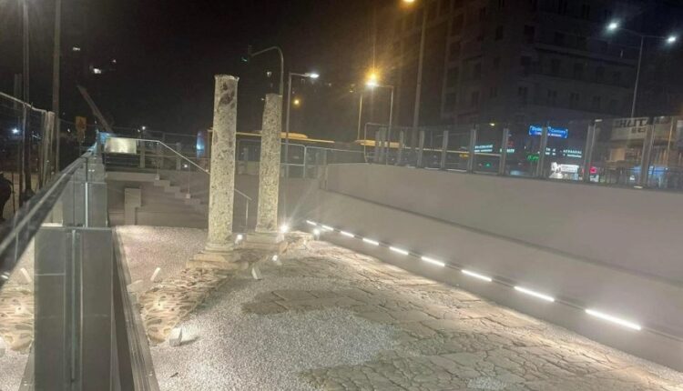 Φωταγωγήθηκαν οι αρχαιότητες που επανατοποθετήθηκαν στο νότιο τμήμα του σταθμού «Αγία Σοφία» του Μετρό Θεσσαλονίκης, αλλάζοντας τελείως την όψη της περιοχής.