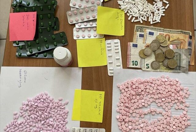 Κατά τη διάρκειά της, βρέθηκαν και κατασχέθηκαν 3.045 ναρκωτικά χάπια, μία χρυσή αλυσίδα, 124 ευρώ, αμερικάνικο δολάριο και 5.006 Γρίβνα Ουκρανίας.