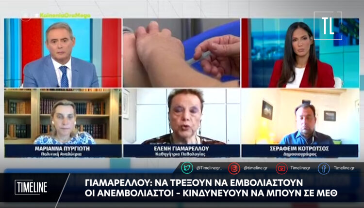 Τον κώδωνα του κινδύνου έκρουσε η καθηγήτρια Παθολογίας Ελένη Γιαμαρέλλου για τους ανεμβολίαστους, οι οποίοι κινδυνεύουν εις διπλούν να αντιμετωπίσουν βαριά τον κορωνοϊό.