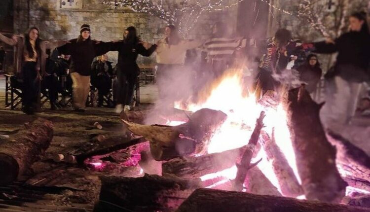Στην κεντρική πλατεία άναψαν μεγάλη φωτιά και διασκέδασαν μέχρι τις πρώτες πρωινές ώρες με δωρεάν εδέσματα και άφθονο κρασί, σύμφωνα με το korinthostv.gr.